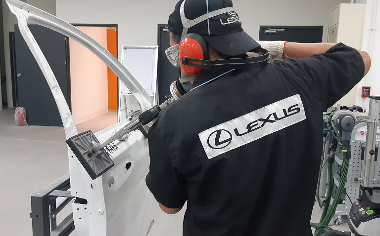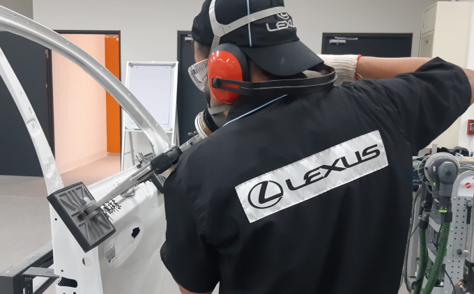 Lexus 設置鋁合金專修工位、防爆集塵桶及防火隔簾,全程以專用鋁製工具施工,可避免接觸鐵導致電位差鏽蝕,並輔以特製工具進行校正與監控,使車輛在維修後可回復原板件的強度與美觀,給您最高品質的服務。