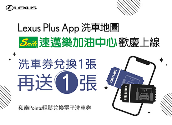 Lexus Plus App洗車地圖 歡慶速邁樂上線 限時兌換一張再送一張!