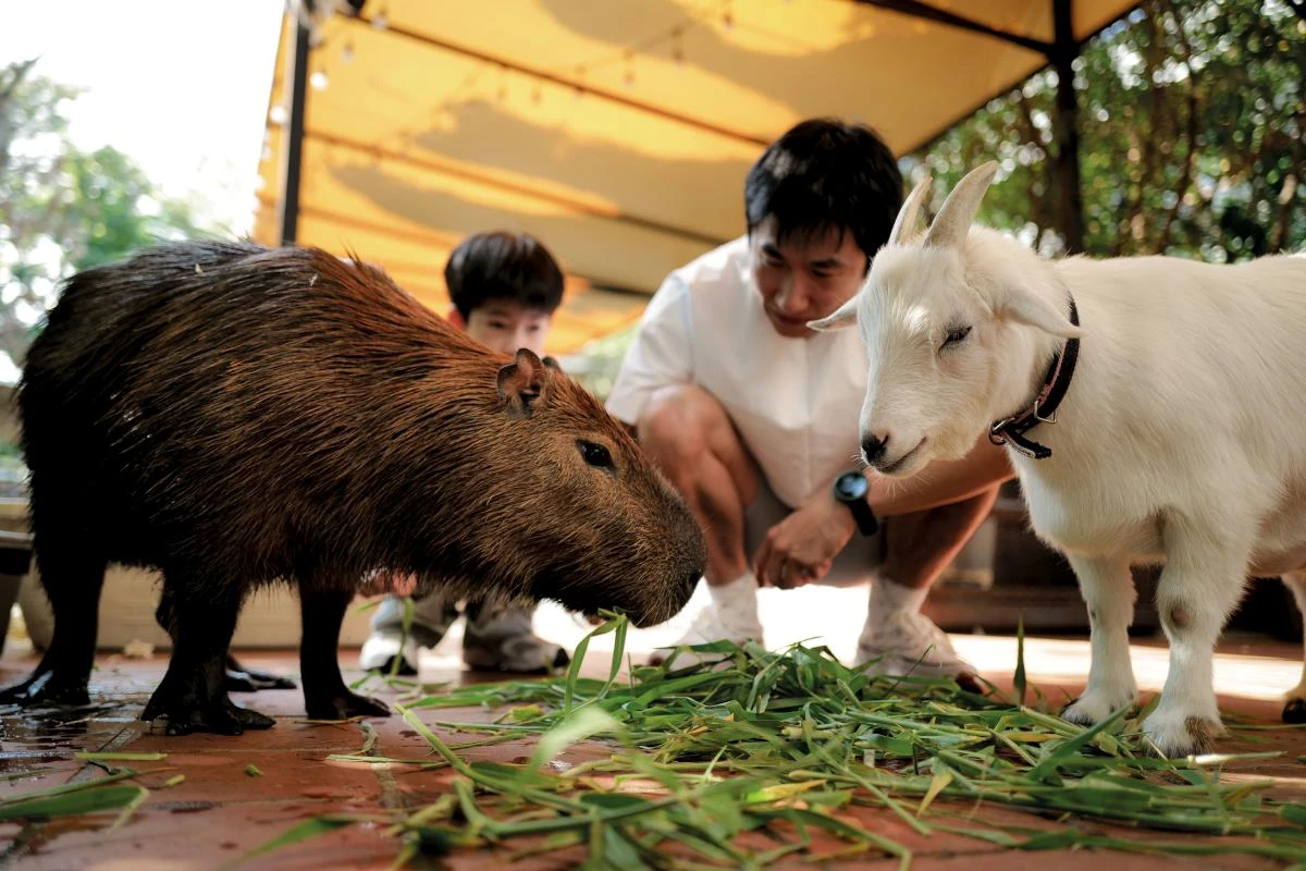 曼谷熙攘市區中,Little Zoo Garden Capybara Cafe是一處被熱帶陽光包圍的幽靜療癒綠洲。走進花木扶疏連著一畦池塘的綠意盎然庭園,以及愜意悠閒的舒適空間,和一群可愛的水豚和毛小孩們相遇,開啟你的療癒之旅。動物有種神奇的魔力——能讓我們活在當下、感受平靜、與這個世界產生連結。用自己的步調,建立真摯的連結,在池畔和水豚一起發呆、讓好奇的狐獴來認識你,這些瞬間,總能觸動內心最柔軟的地方。