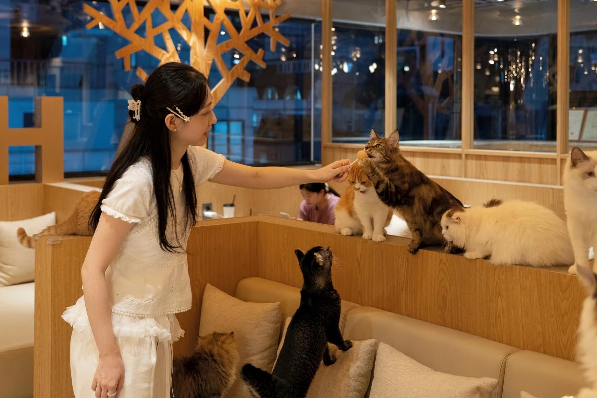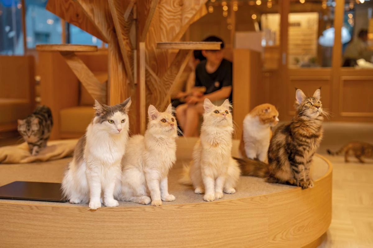以溫暖療癒著稱的日本品牌Cafe Mocha,正式插旗首爾江南區,延續品牌一貫的「精緻、時尚、非傳統貓咖感」的設計風格,在節奏飛快的都會核心,打造一處專屬於貓咪與人共處的高品質療癒空間。室內以淺色木質、柔和燈光與流暢線條構築明亮氛圍,空間溫馨舒適有質感,乾淨整潔、幾乎沒有動物氣味。店內約20隻貓咪,個性鮮明、健康都被悉心照料,讓顧客可以安心地與牠們共度時光。