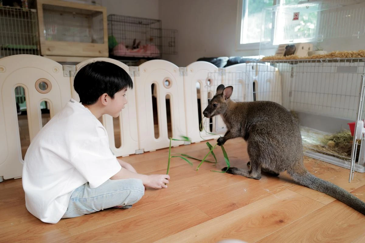 每個毛孩子都是這裡珍視的家人,擁有各自的鮮明性格與生活步調。當水豚輕依腿邊小憩、狐獴眨眼探頭、溫順小鹿啜食掌心嫩葉,這些純粹觸碰瞬間喚醒內在平靜。柯基搖尾撒歡、山羊輕拱臂彎、袋鼠躍近嬉鬧,還有悠遊陸龜、絨羽絲毛雞、活潑鴨子、白化海狸鼠,各色生靈匯聚,譜出無聲卻深刻的溫暖交織。這不只是動物咖啡廳,是讓你感受真實情感的地方。來自超過50個國家的旅人,都在這片充滿愛的園地裡,尋回了那份純粹、無條件被接納的溫暖,帶著煥然一新的平靜心情,重返忙碌的世界。