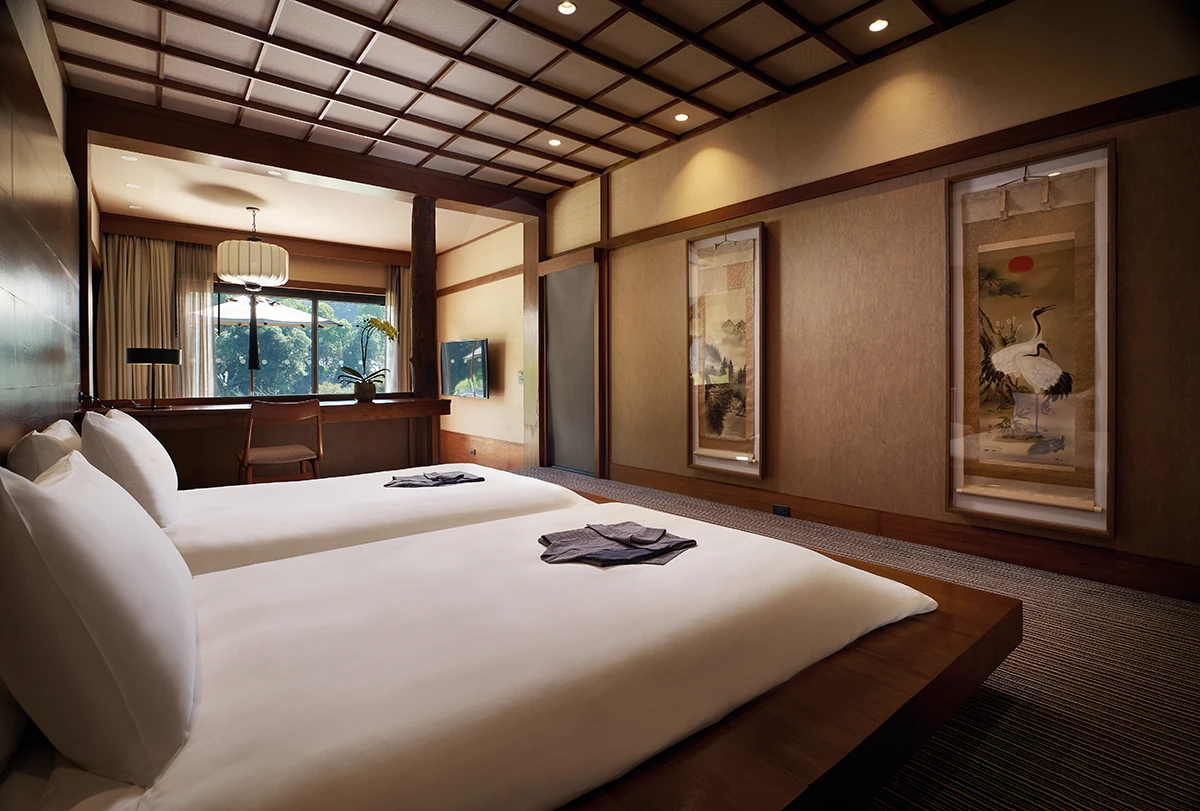 這裡引以為傲的,是將烏來珍貴的碳酸氫鈉泉引入所有客房,其中3間更規劃了獨立露天風呂。從踏入房門的瞬間,即被溫潤泉水輕柔包覆,感受大地最純粹的療癒能量。為了讓感官徹底回歸,客房內刻意不設電視,邀請旅人遠離數位塵囂,靜心聆聽山林溪谷的呢喃與心跳。提供「一泊三食」,所有料理皆嚴選當令季節食材,呼應烏來山谷的在地風情。在這片靜謐山林中,時間彷彿靜止,感官重新甦醒,一場關於純粹、永續與隱奢的生活美學,就此展開。