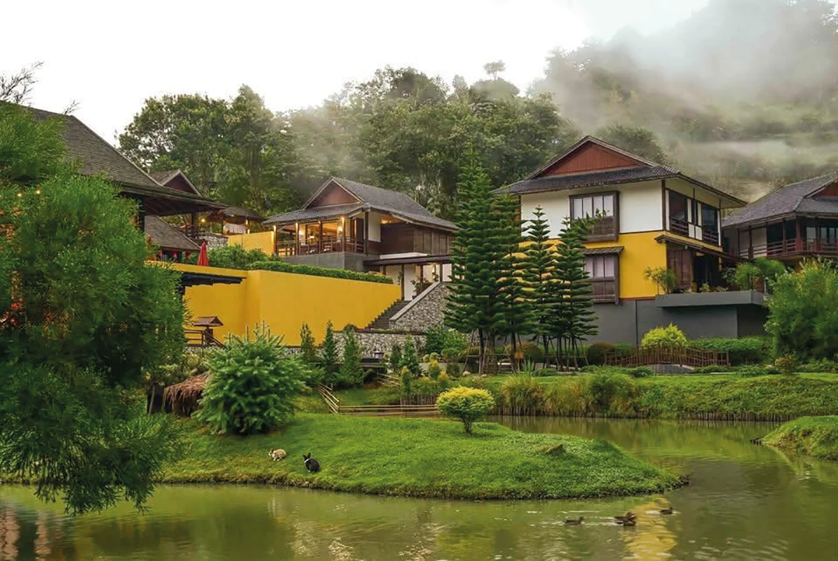 清邁以北,海拔1,200公尺的雲霧繚繞之處,Onsen At Moncham如同一首東西方美學交織的詩篇。這裡以泰北蒼翠山巒為畫布,點綴著日式枯山水庭園的禪意筆觸。踏入的瞬間,木質建築的溫潤氣息撲面而來,彷彿穿越至日本深山的隱世湯宿,卻又在窗外熱帶植被的搖曳中,感受到獨特的泰日美學優雅共舞。