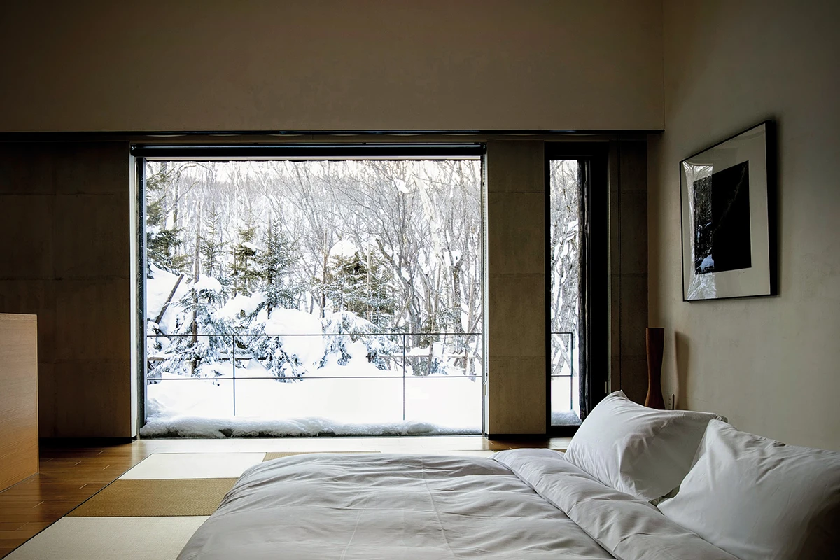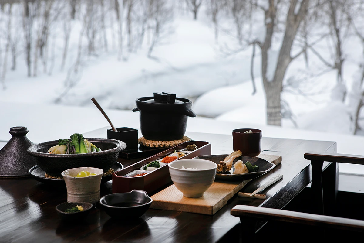 全館僅規劃15間獨立套房,每一間皆奢華配置室內與露天雙湯池。泉源取自地下深處一千公尺的火山溫泉,富含偏矽酸與多種珍稀礦物,被譽為北海道的極致湯泉。沉浸其中,四周環繞著無邊際的原始風光,羊蹄山的壯麗與安努普利的連綿山脈交織成畫。從夏季的碧綠青蔥、秋季的楓紅層疊,到冬季的白雪皚皚,四季更迭的自然光影,為每一次入浴增添了流動的靈氣。此外,為了向當地舉世聞名的細緻粉雪致敬,客房皆以獨特的「雪之紋樣」命名,別具詩意。而旅程的另一亮點,是由屢獲殊榮的主廚瀨野嘉寬,嚴選北海道豐饒的旬之食材,創作獨樹一格的「北懷石料理」。這不僅是傳統京都懷石的北國演繹,更是與自然對話的食藝展演,讓身心在湯泉、美景與珍饈之間,達到真正的圓滿與放鬆。
