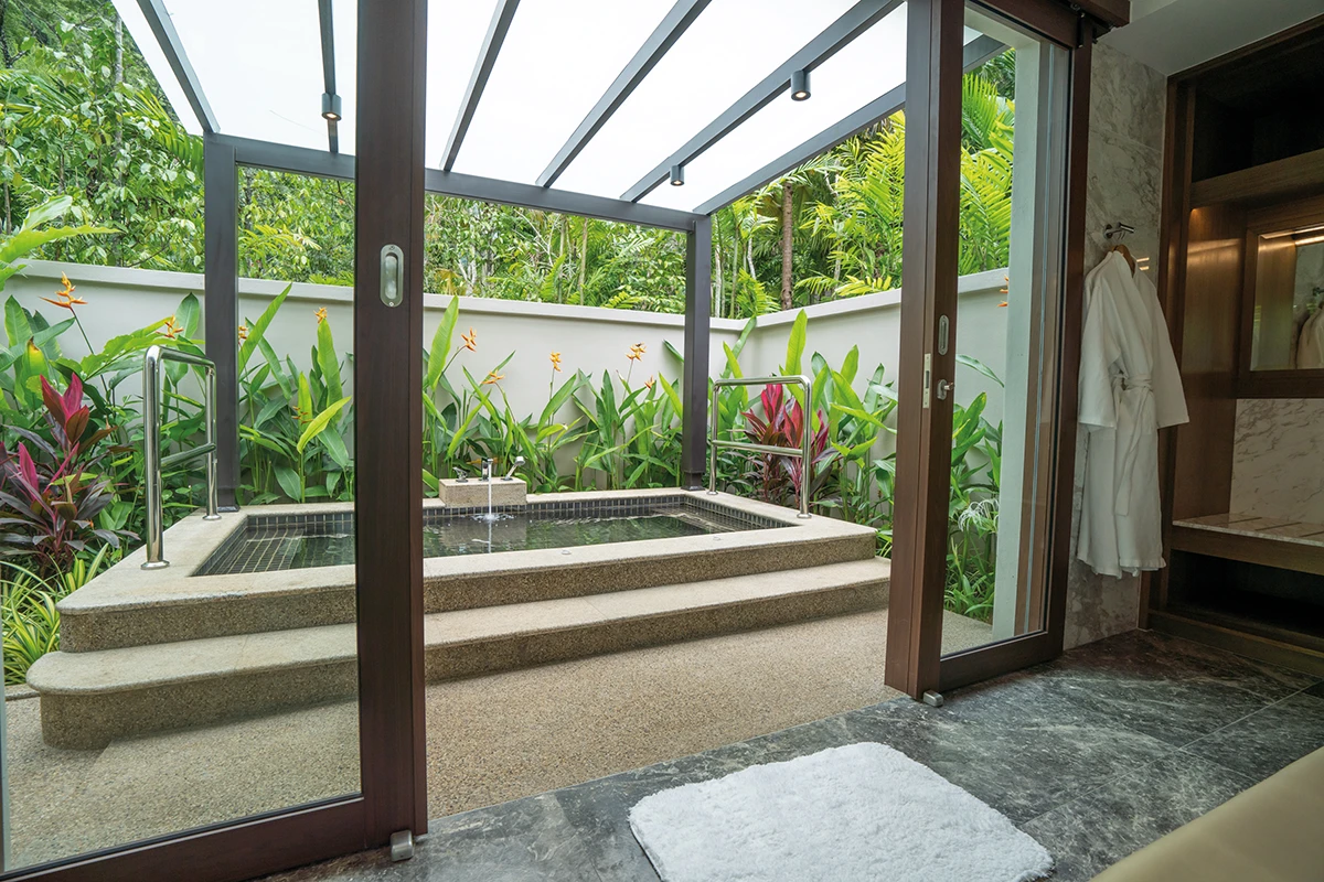 在占地22.7英畝的廣闊綠意中,度假村奢侈地僅規劃了44棟別墅,目的在確保極致的隱私與寧靜。無論是依偎著蓮花湖畔、隱於叢林蓊鬱深處,抑或是由庭院圍塑的一方天地,每一座寓所皆運用天然建材引景入室。柔和的採光與寬敞格局,鋪敘出靜謐優雅的氛圍;而私人泳池、戶外雨淋與地熱溫泉按摩浴缸,則交織出層次豐富的放鬆節奏,讓沐浴成為一場屬於靜心與重生的私密展演。此外,絕不能錯過的感官盛宴,是步入擁有2.6億年歷史石灰岩洞穴中的「Jeff's Cellar」。在鐘乳石滴水的迴響中,品味窖藏美酒與佳餚,體驗獨一無二的洞穴饗宴。最後再體驗融合馬來、中式與印度古老智慧的客製化水療,全方位喚醒沉睡的感官,讓這趟旅程成為生命中難以磨滅的療癒印記。