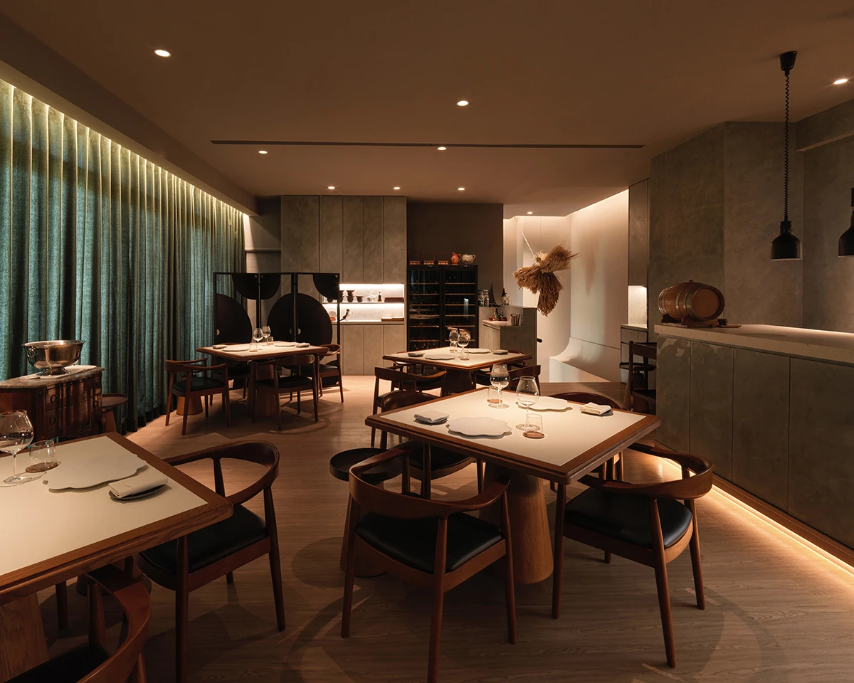 大地色系的溫潤色調,是踏入「方蒔The Front House」的第一印象。宛如私人宅邸般的空間設計,讓賓客能卸下拘謹,重拾自在。這間餐廳由主廚蔡中和與身兼侍酒師的妻子陳玉錡於2023年共同創立,兩人將累積20餘年的深厚餐飲閱歷注入其中。英文店名取自餐飲術語「外場」(Front of House),蘊含著主廚的深刻哲學:一場動人的餐飲體驗,必須是內場精湛廚藝與外場細膩款待的完美共演,方能真正觸動人心。