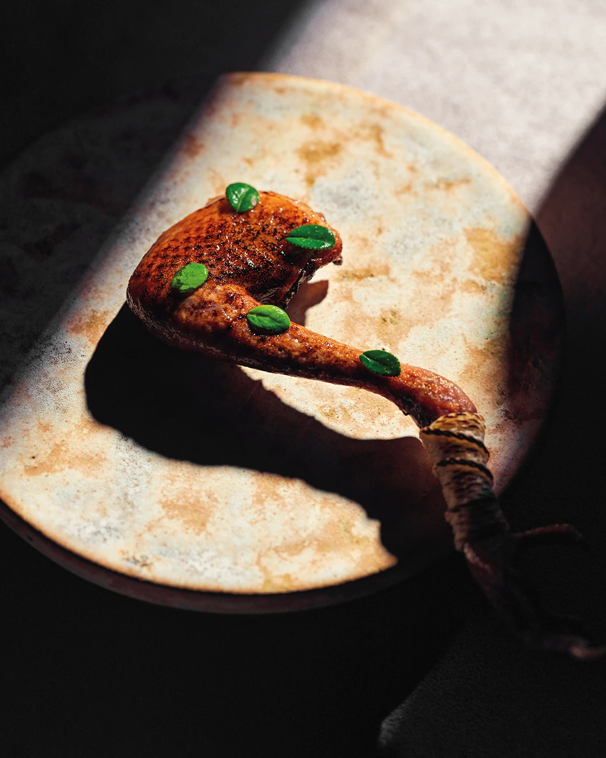 江耀宇從高雄餐旅大學起步,到法國 Paul Bocuse 廚藝學院深造,歷經巴黎、倫敦、斯德哥爾摩的星級廚房洗禮。他以深厚的法式技藝為底蘊,巧妙揉合台灣山海的節奏、四季的更迭與東方味覺細節,細膩描繪出料理的層次。他的創作猶如一場與食材的深度對話,將熟悉的味道以異國手法重新演繹,風味純淨,引領味蕾層層向下,探尋感知的極限。招牌虱目魚佐以經典法式奶油醬汁,展現了優雅的深度;將雪菜與梅乾菜巧妙包裹的乳鴿派,則是將台灣熟悉的氣味拆解後結構重組;尾聲以黑糖舒芙蕾畫下句點,並讓東方美人茶的餘韻封存味覺記憶。在江曜宇手中,食材的疆界被徹底打破,化作盤中令人驚豔的法式變奏。