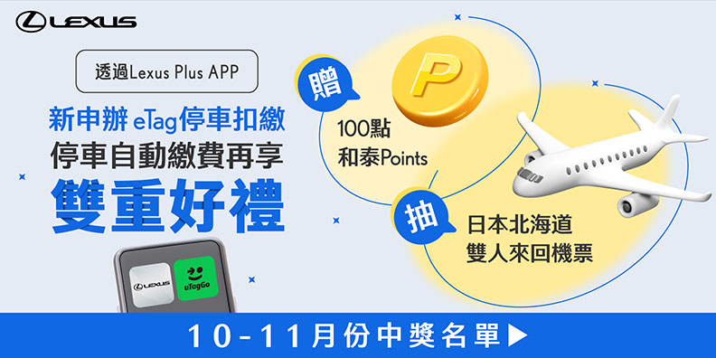 二、適用對象:和泰集團會員(Lexus車主)從「Lexus Plus APP」中,前往開通eTag停車扣繳服務的新申辦用戶(限LEXUS車牌)